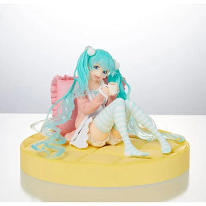 Vi presentiamo il delizioso Vocaloid Hatsune Miku Original Shifuku Ver. di Taito. Questa incantevole figura presenta Miku in un adorabile outfit casual, perfetto per una giornata accogliente. Comodamente seduta su un soffice cuscino giallo, Miku tiene in mano una tazza di tè fumante, che incarna il relax e il calore. Il suo cardigan rosa pastello, i calzini a righe bianche e azzurre e i pantaloncini con volant aggiungono un'estetica affascinante e morbida. La scultura dettagliata delle sue iconiche code gemelle turchesi scorre con grazia intorno a lei, aggiungendo un'atmosfera serena. Con un'espressione dolce e invitante, questa figura cattura magnificamente il lato più morbido e casalingo di Miku, rendendola un'aggiunta irresistibile a qualsiasi collezione.